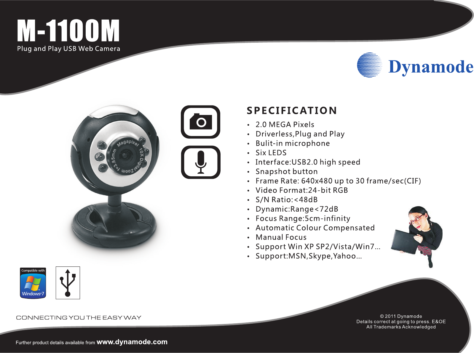 Przeglądaj online lub pobierz Arkusz Danych dla Kamery internetowe Dynamode M-1100M. Dynamode M-1100M webcam Instrukcja obsługi